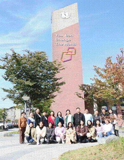 双方学校集体参会教师及太阳成集团tyc33455ccwww实习教师在滨湖双语实验中学钟楼下合影