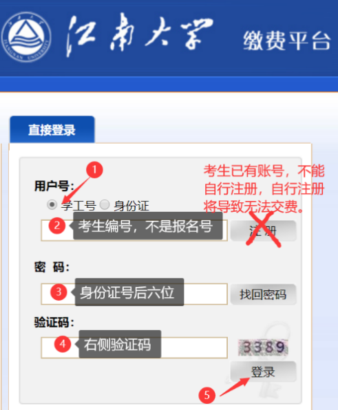 缴费说明:进入复试考生在学院规定的时间内登录“太阳成集团tyc33455ccwww缴费平台”交纳复试费用,复试收费标准:80元/生。缴费网址:http://pay.jiangnan.edu.cn/payment/。登录账号为准考证上的考生编号,登录密码为身份证后六位(友情提醒:考生账号已开通,切勿自行注册)。按照提示交费(使用网银),并打印或截图保存付费凭证。