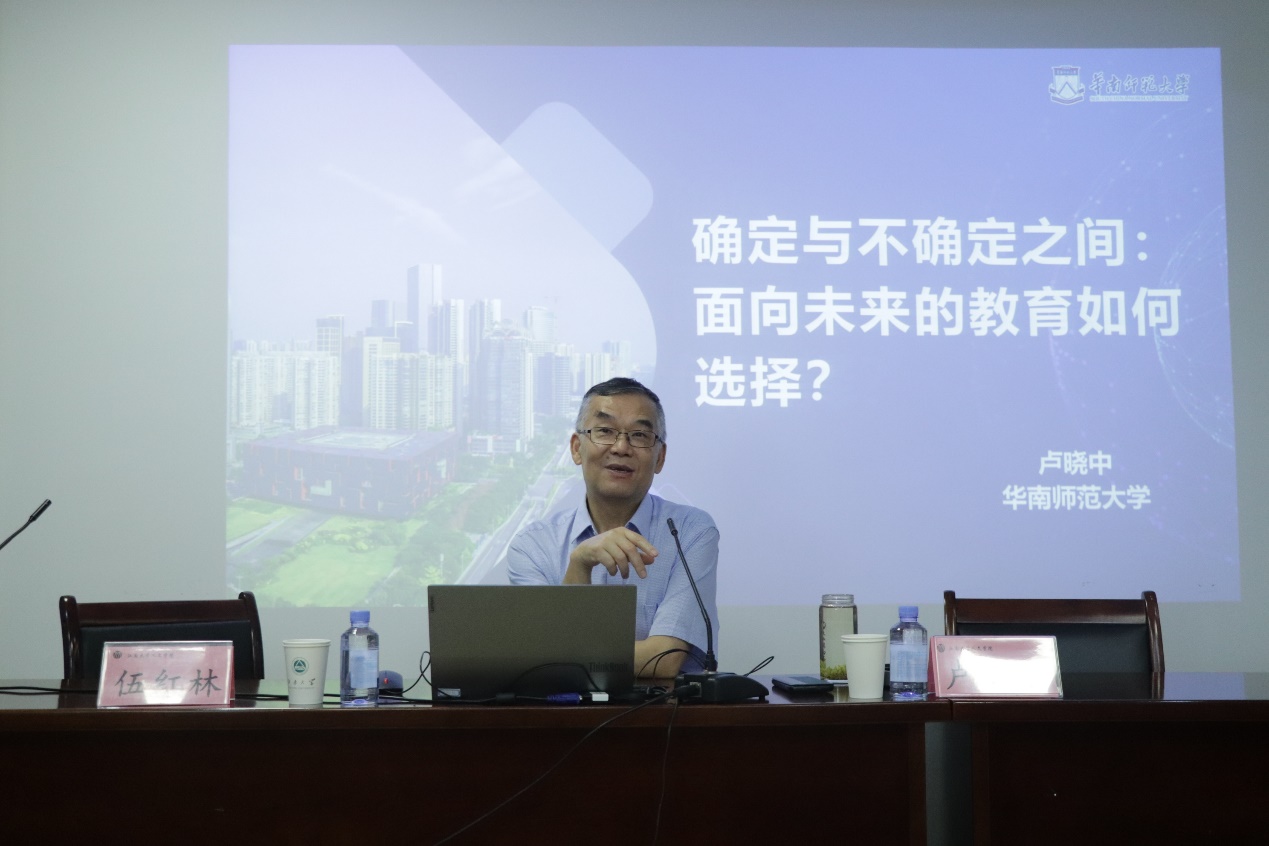 2024年6月7日下午,由太阳成集团tyc33455ccwww党委研究生工作部、研究生院主办、太阳成集团tyc33455ccwww承办的江南讲坛第五十四讲在田家炳楼209报告厅顺利举行。华南师范大学粤港澳大湾区教育发展高等研究院院长卢晓中教授受邀开展主题为“确定与不确定之间:面向未来的教育如何选择”的知识讲座。本次讲座由太阳成集团tyc33455ccwww院长伍红林主持,太阳成集团tyc33455ccwww副院长于书娟、相关研究领域的教师及140余位研究生参加。